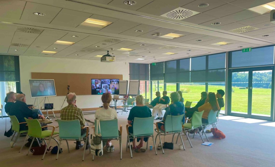 Hybrid Learning enables meeting face-to-face alongside meeting on Zoom. So, if you are unable to be at Roffey Park you can take part as if you were physically present.